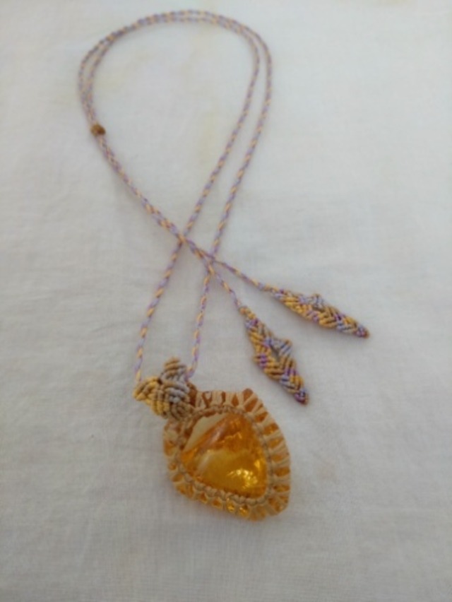インドネシア産 アンダラクリスタル ゴールデンイエロー(橙色) マクラメ編みデザインネックレス 紐長さ約96㎝位まで調節可能