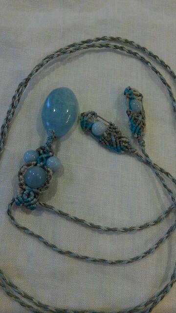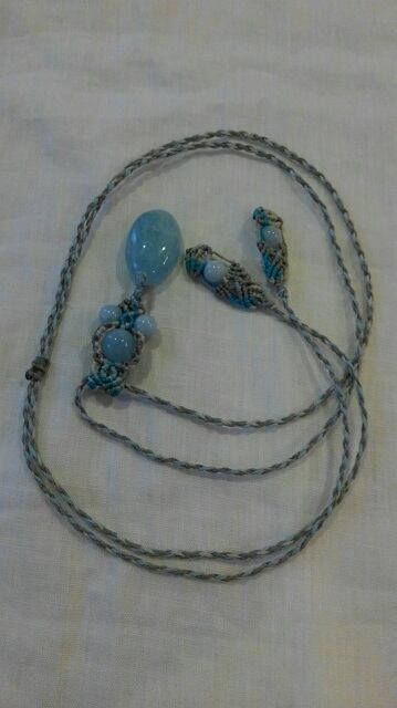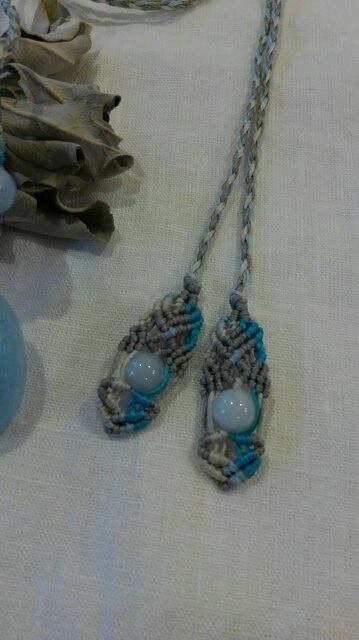 【三月の誕生石】アクアマリン ☆ マクラメ編みデザインロングネックレス 長さ約114cm位まで調節可能