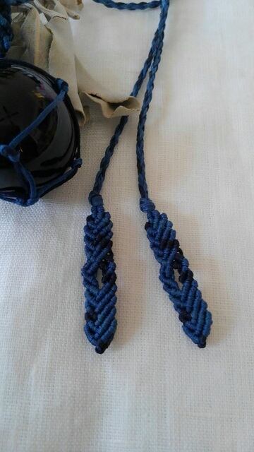 モリオン(黒水晶)丸玉 マクラメ編みデザインネックレス 長さ約84cm位まで調節可能