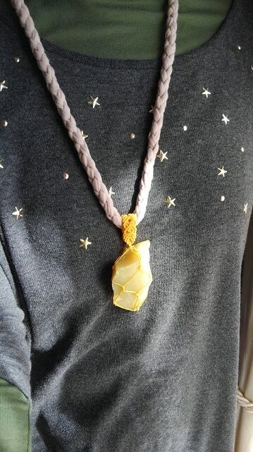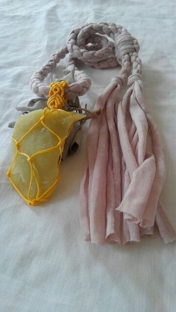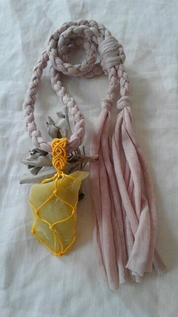 ヒーラーライト原石(ヘブン&アース社発行の証明書付き)マクラメ編みデザインネックレス 長さ約80cm位まで調節可能