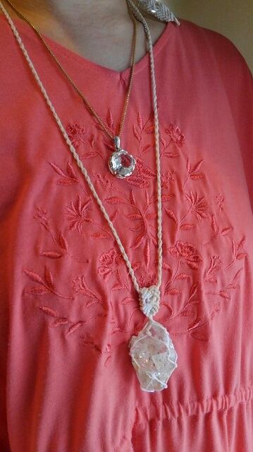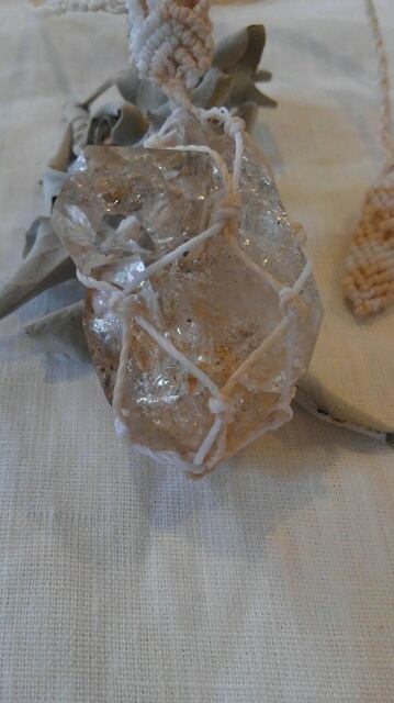 ニューヨーク州ハーキマー地区産 ハーキマーダイヤモンド原石 マクラメ編みデザインネックレス 長さ約94cm位まで調節可能