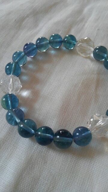 アメリカ産ブルーフローライト&スターカット水晶 ☆ デザインブレスレット 内径約15~15,5cm