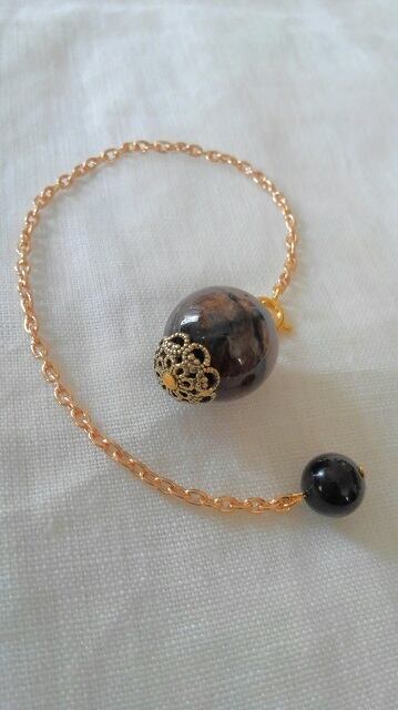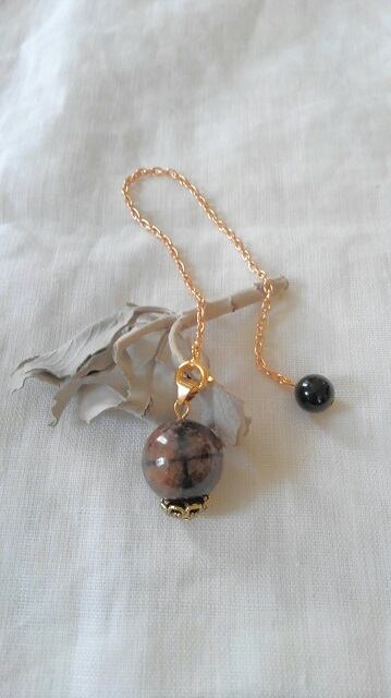 アンダルサイト(キャストライト)ペンデュラム モリオン(黒水晶)付きペンデュラムチェーン取り外し可能