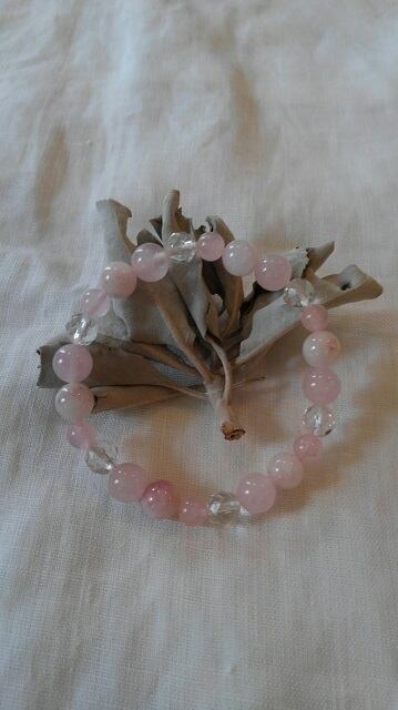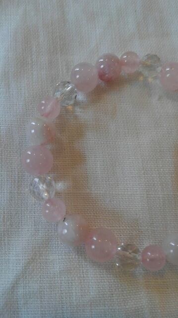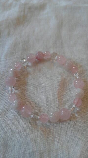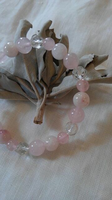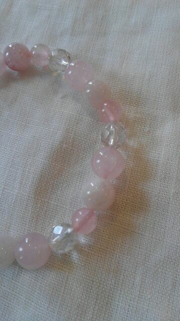 ローズクォーツ・モルガナイト・水晶 ☆ デザインブレスレット 内径約15~15,5cm