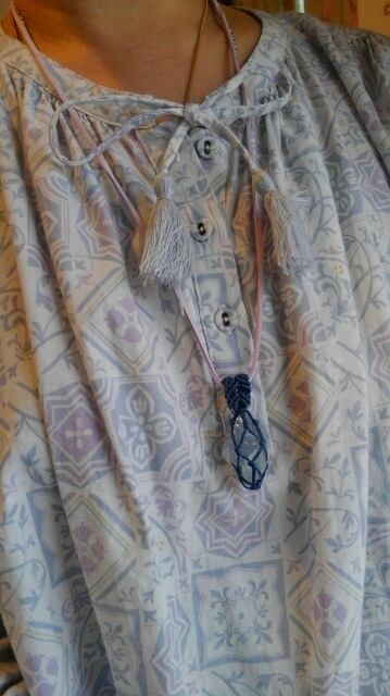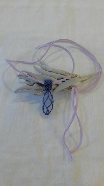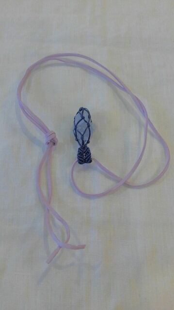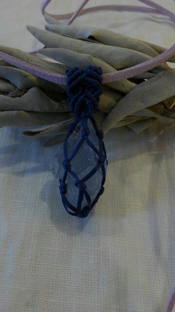 透明美 ☆ セレスタイト原石 マクラメ編みデザインペンダントトップ&スエード調紐 重さ約15g
