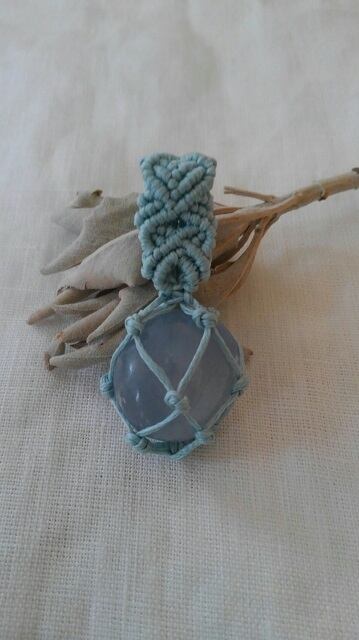 セレスタイト・タンブル ☆ マクラメ編みデザインペンダントトップ 重さ約13g