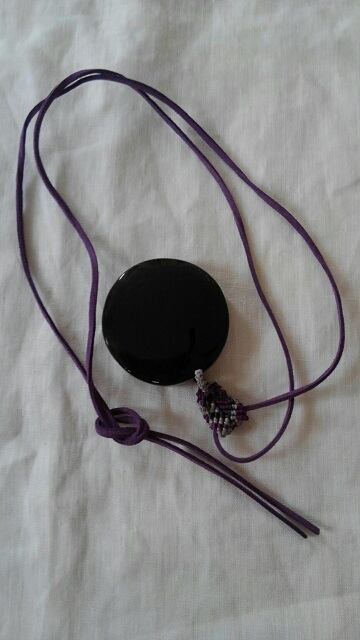 紐部分:スエード調紐パープルカラー・約1m・幅約2,5mm、紐をくくることにより長さ調整可能(中国製・ポリエステル、ポリウレタン製)