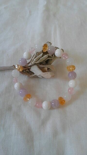 ラベンダーアメシスト・ホワイトオニキス・ホワイトジェイド・シトリン・ローズクォーツ デザインブレスレット 内径約15~15,5cm
