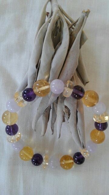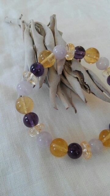 イエローフローライト・ラベンダーアメシスト・アメシスト・シトリン デザインブレスレット 内径約15~15,5cm