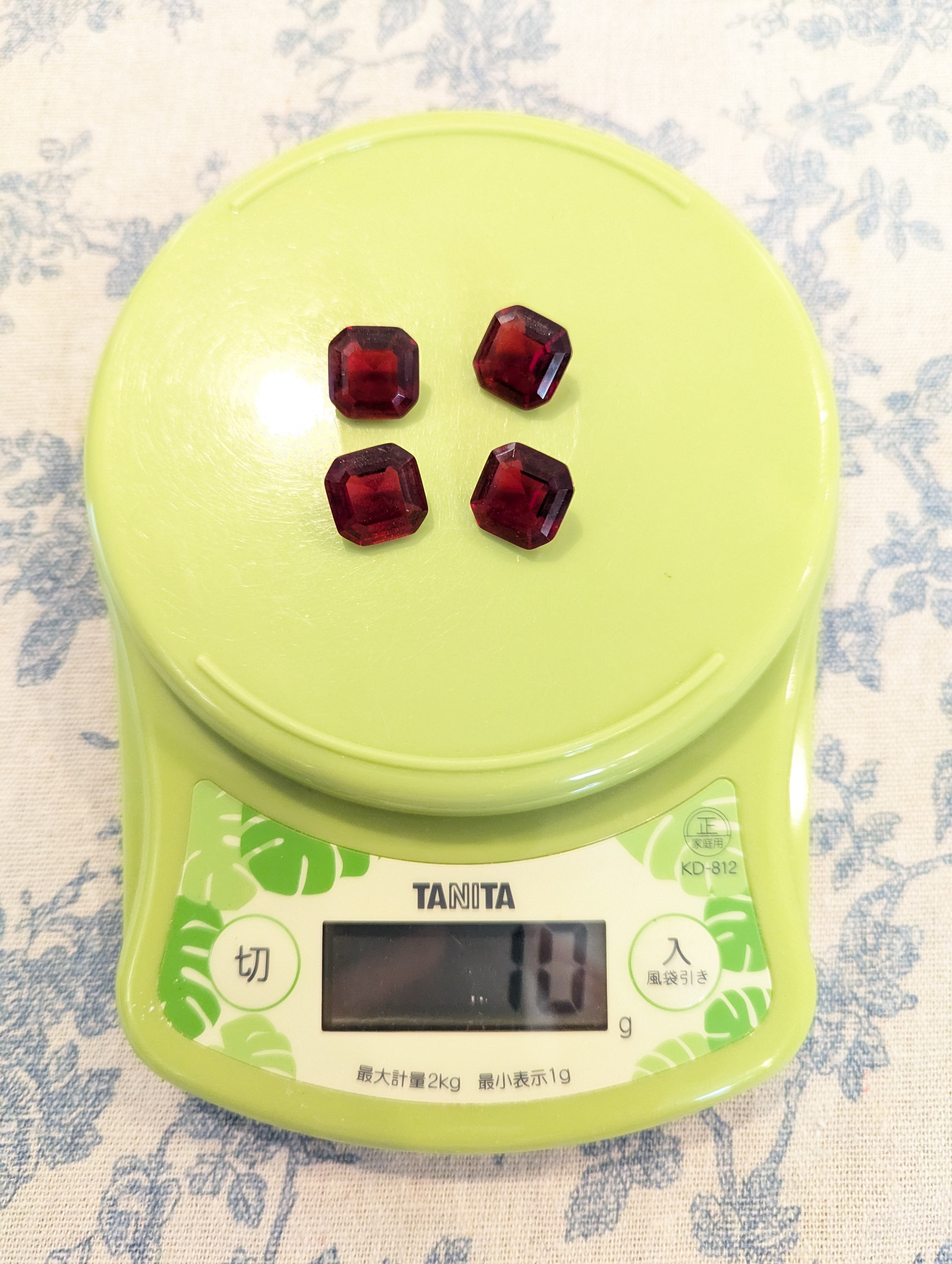 Shine Andara Crystals ✡ インドネシア産アンダラクリスタル ラズベリーレッド スクエアカット 合計四点