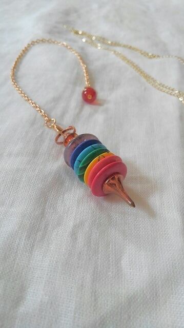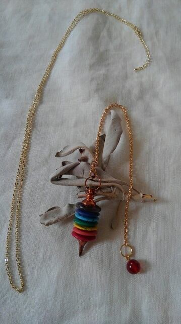インド製七色石ペンデュラム&赤アゲート付きペンデュラムチェーン ネックッレスチェーン付属