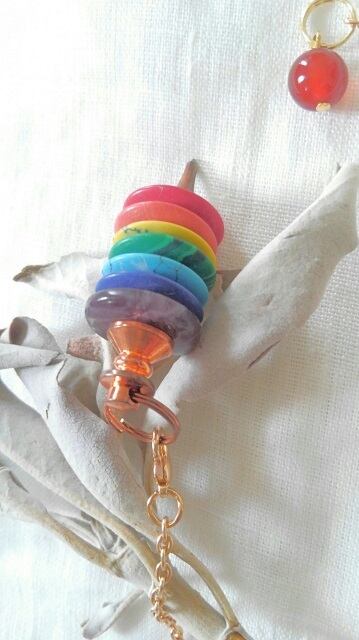 ペンデュラム:インド製、最大幅約42,8mm(輪を除く)、七色石(紫色のアメシスト、緑色のマラカイト、その他の石につきましては練り石ビーズ)