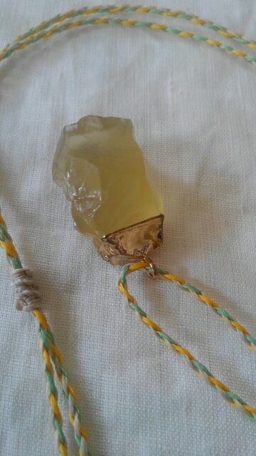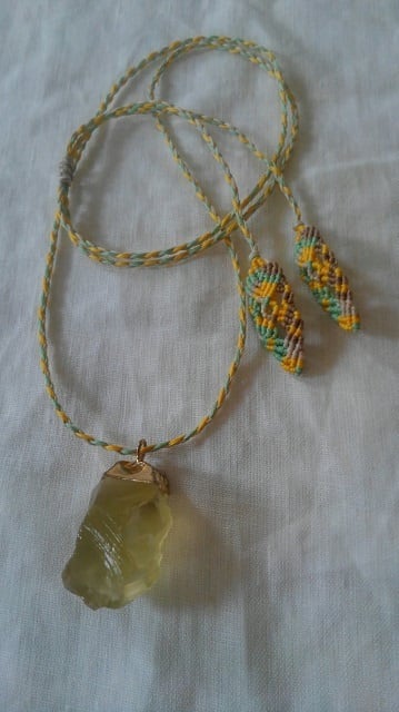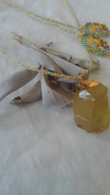 レモンクォーツペンダントトップ&マクラメ編み紐ネックレス ☆ 長さ約88cm位まで調節可能