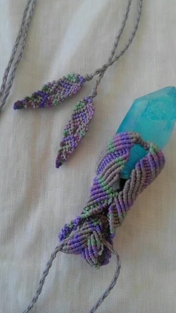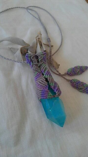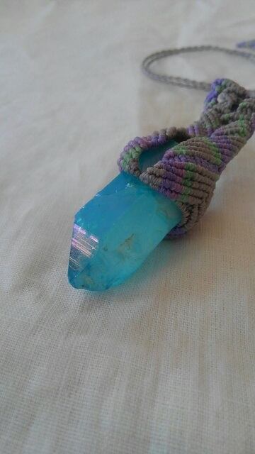 アクアオーラクォーツ原石ポイント ☆ マクラメ編みデザインネックレス 長さ約84cm位まで調節可能