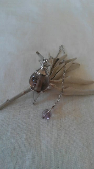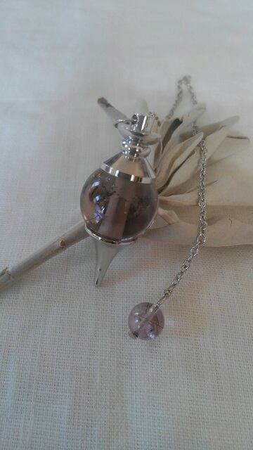 スモーキーアメジストエレスチャル&アメジストエレスチャル(ペンデュラムチェーン先端部)ペンデュラム