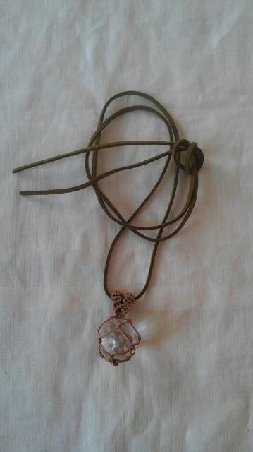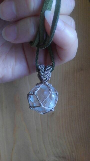 賢者の石 ☆ バッキーボールカット・ブラジル産水晶 マクラメ編みペンダントトップ&スエード調紐