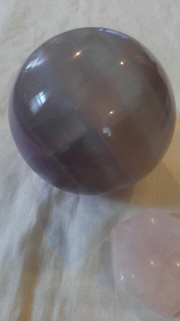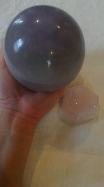 希少・ローズクォーツ製台座&フローライト丸玉 ☆ 直径約96mm 重さ約1545g