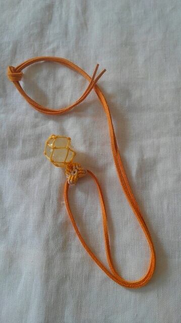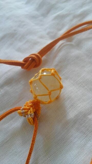 リビアングラス(リビアンデザートグラス)・約20,55mm玉 マクラメ編みペンダント&スエード調紐 重さ約12g