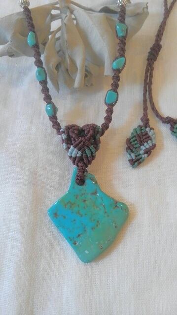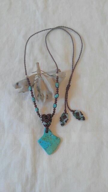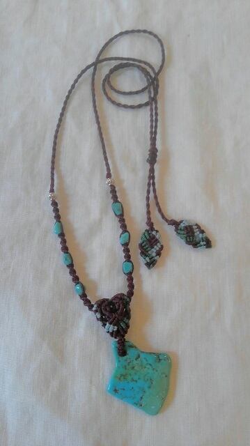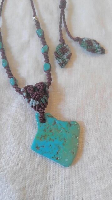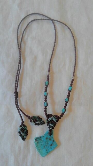 【I様よりオーダー分】 アリゾナ産ターコイズ ★ マクラメ編みデザインネックレス 長さ約75cm位まで調節可能