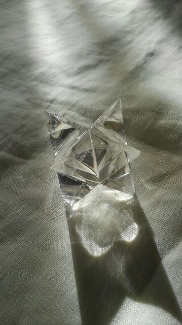二つの正三角形を上下反対に組みあわせた形状をヘキサゴンと呼び、創造のシンボルとされ自然界に生命エネルギーを放出する形といわれます。ヘキサゴンは上向きと下向きの相反する二つの三角形を組み合わることで、安定したパワーを常に放つと考えられています。このマカバスター(マルカバスター)はそのヘキサゴンを立体的にした形状となります。二つのピラミッドを合体させた形状は、古代より世界各地で魔法陣や秘術の道具として用いられたヘキサゴンのパワーをより強力に発揮させるといわれ、魂を異次元へ運ぶともいわます。