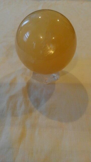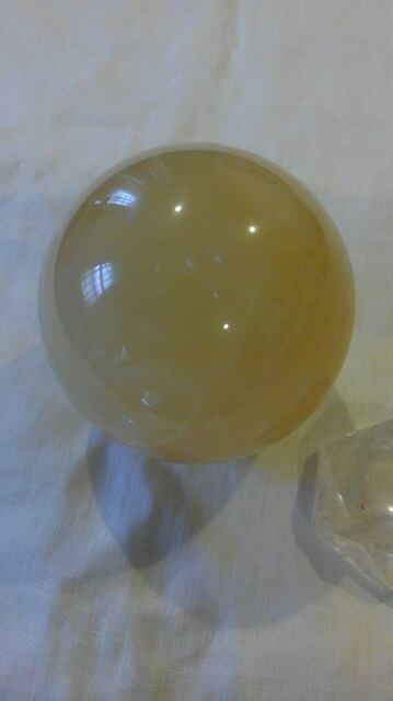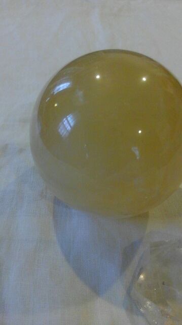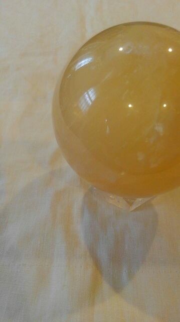 希少・水晶台座&イエローカルサイト丸玉 ☆ 直径約86mm 重さ約920g