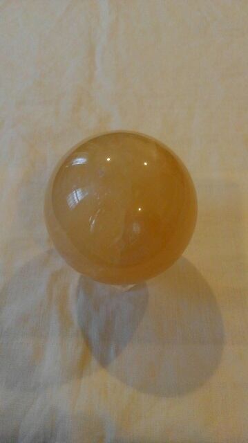 大きさ:イエローカルサイト丸玉直径約86mm、水晶台座約53mm×約46mm×約17mm
