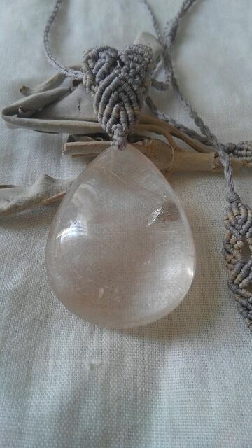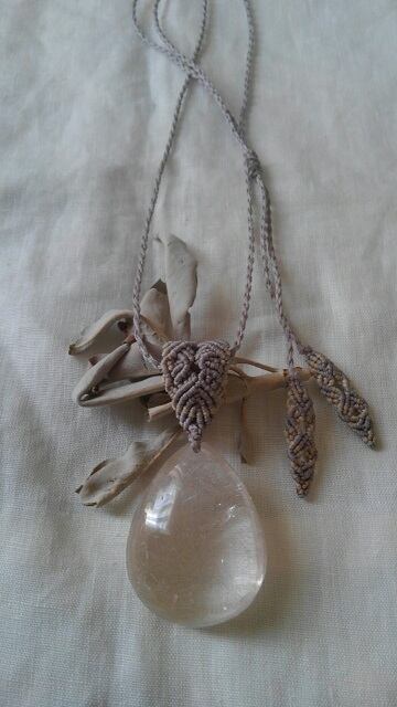 大粒プラチナルチルクォーツ ☆ マクラメ編みデザインネックレス 長さ約88cm位まで調節可能