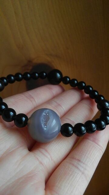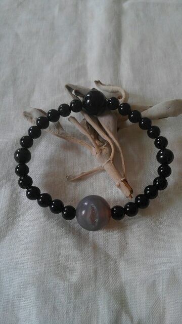 ドゥルージー(笑口)アゲート・モリオン(黒水晶)・ブラックスギライト・オブシディアン ★ デザインブレスレット 内径約16,5~16,9cm
