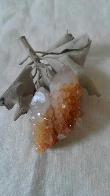 カクタスクォーツは2つの種類あり、結晶が大きくはっきりしているものをスピリットクォーツ、ドゥルージー(晶洞)のように、砂糖をまぶしたような小さな結晶がキラキラと粒状に覆っているものを、フェアリークォーツと呼んだりいたします。