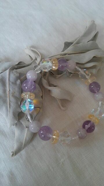 スターカットルナフラッシュ・アメシスト・ラベンダーアメシスト・シトリン・水晶 デザインブレスレット 内径約16㎝