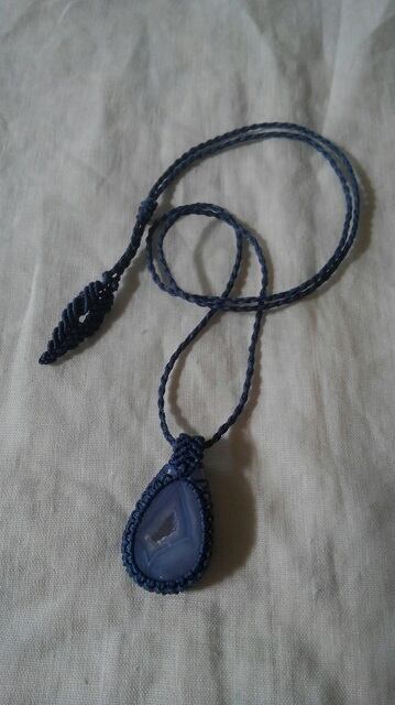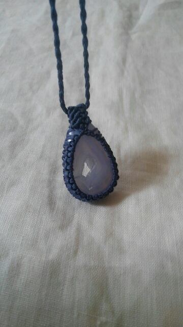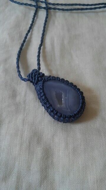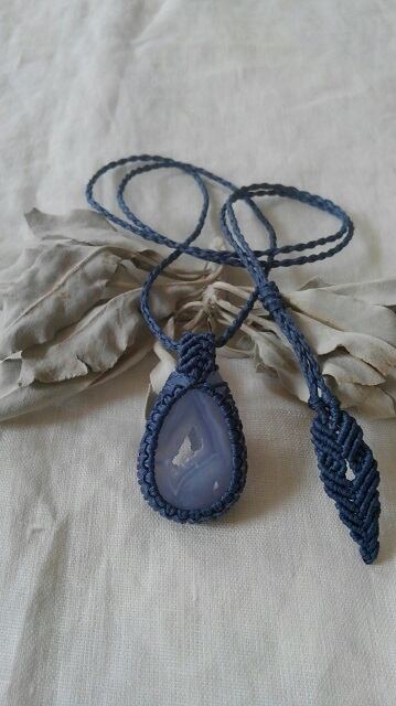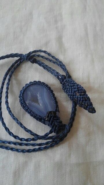 ドゥルージー(笑口)ブルーレースアゲート(ブルーカルセドニー)☆ マクラメ編みデザインネックレス 長さ約76cm位まで調節可能