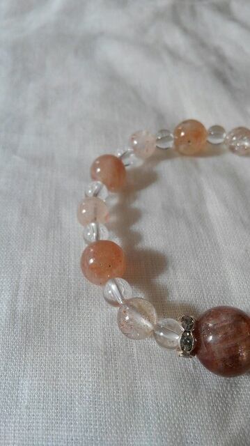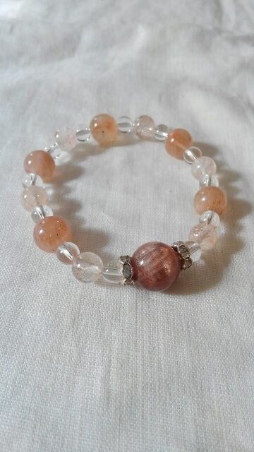 サンストーン・アフリカンストロベリークォーツ・水晶 デザインブレスレット 内径約15~15,5cm