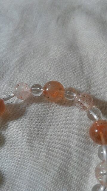 石:サンストーン約13㎜、アフリカンストロベリークォーツ約10㎜、約8㎜、水晶約6㎜