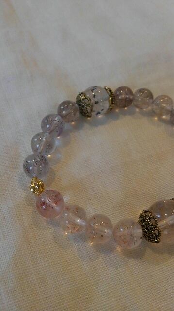 石:スーパーセブン(アメシストエレスチャル・セイクリッドセブン)約13mm×1玉、約12㎜×1玉、約8~9㎜×16玉