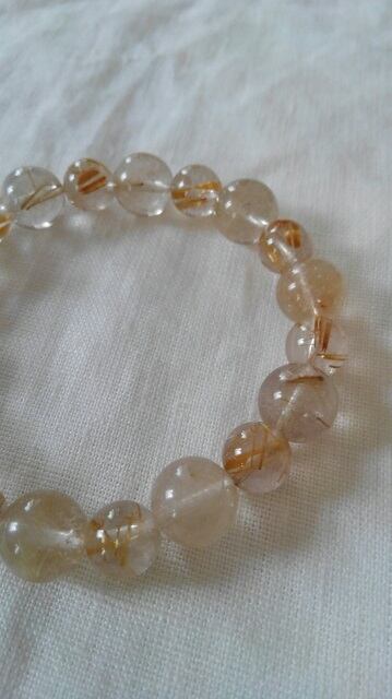 透明美・ゴールドルチルクォーツ ☆ デザインブレスレット 内径約14,3~14,8cm