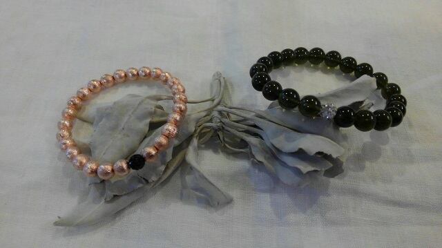 【H様によるオーダー】 ナミビア産ギベオン(ピンクゴールド)デザインブレスレット&モルダバイト・デザインブレスレット