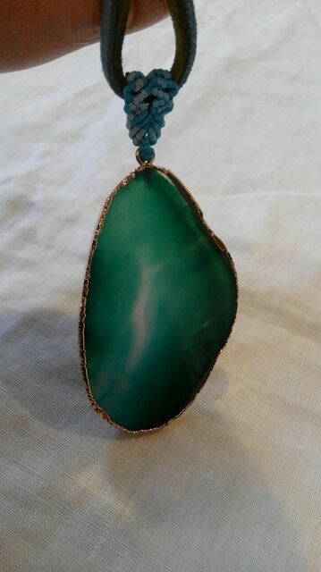 瑪瑙スライス(染加工)マクラメ編みペンダントトップ&スエード調紐 ネックレス 重さ約37g