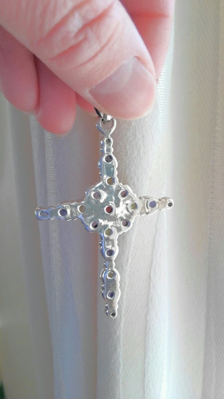 現地職人によるハンドメイドのクロスデザインペンダントトップとなります。美しい半貴石の配置が大変魅力的な一品です。