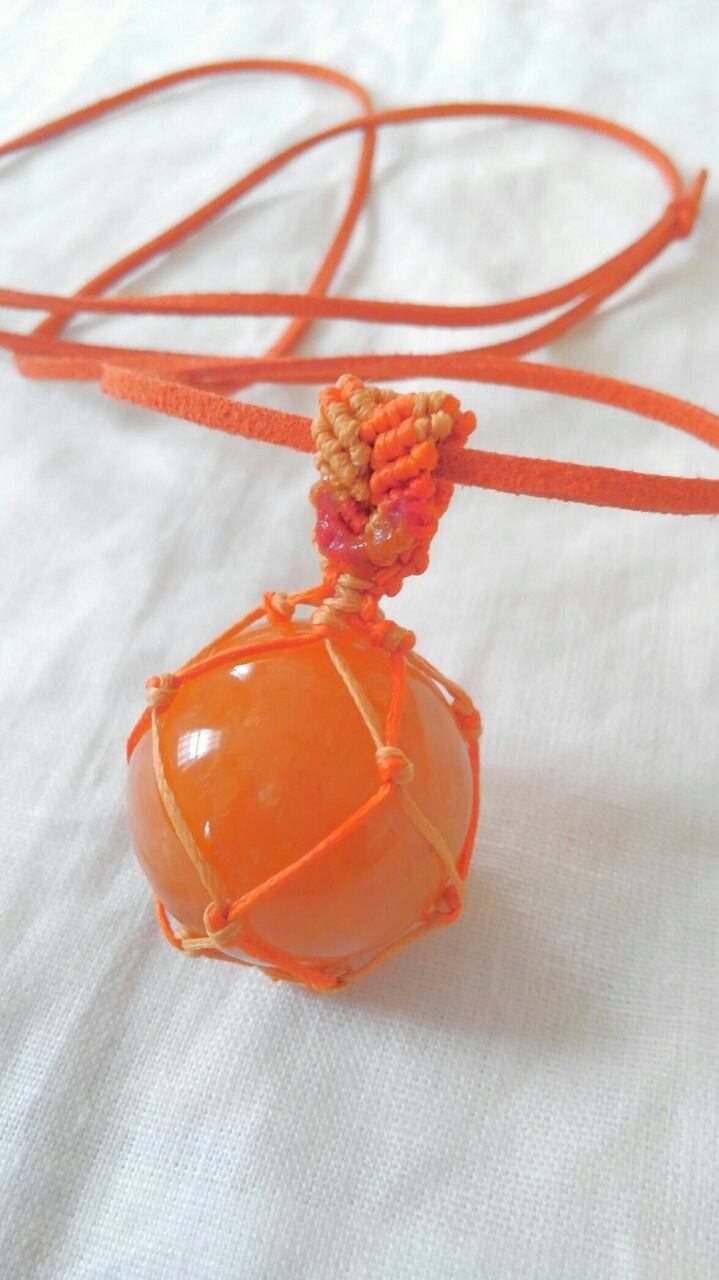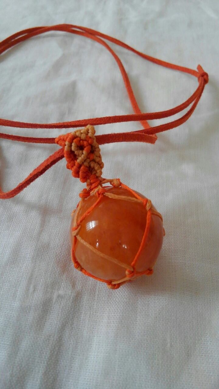 ヒマラヤ・レッドゴールド・アゼツライト丸玉 マクラメ編みペンダントトップ&スエード調紐 重さ約39g