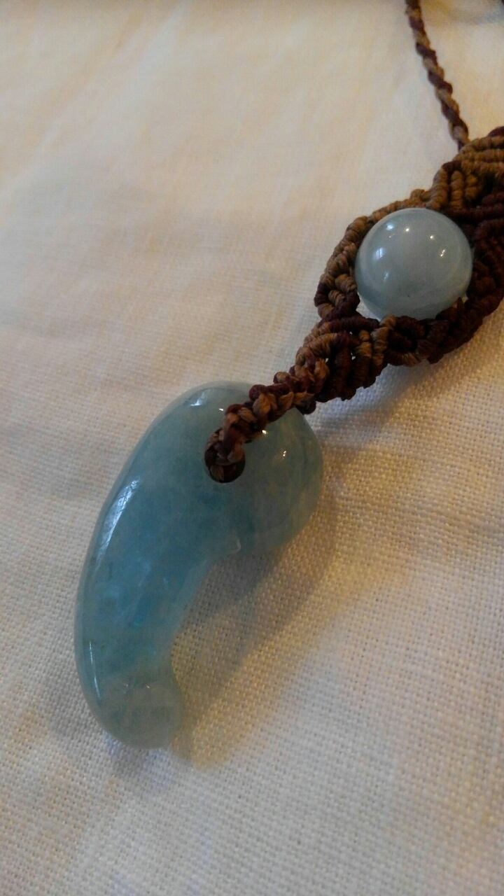 神秘的なアクアマリンの勾玉に触れ、古代のイメージが脳裏に浮かびつつ編み上げたデザインネックレスとなります。この石とデザインにピンと来た方、お見逃しなく宜しくお願いいたします。
