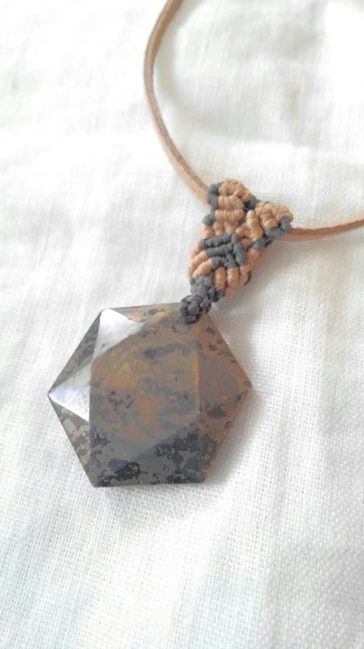 Healer's Gold ヒーラーズ・ゴールド アゾゼオ・六芒星デザイン マクラメ編み&スエード調紐ネックレス(証明書付き) 重さ約17g