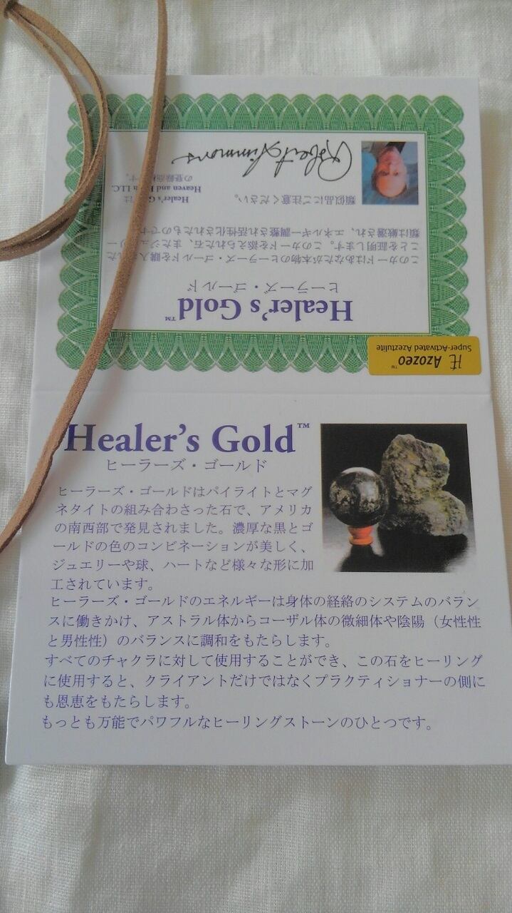 付属品:ヒーラーズ・ゴールド アゾゼオ証明書(ヘブン&アース社発行)