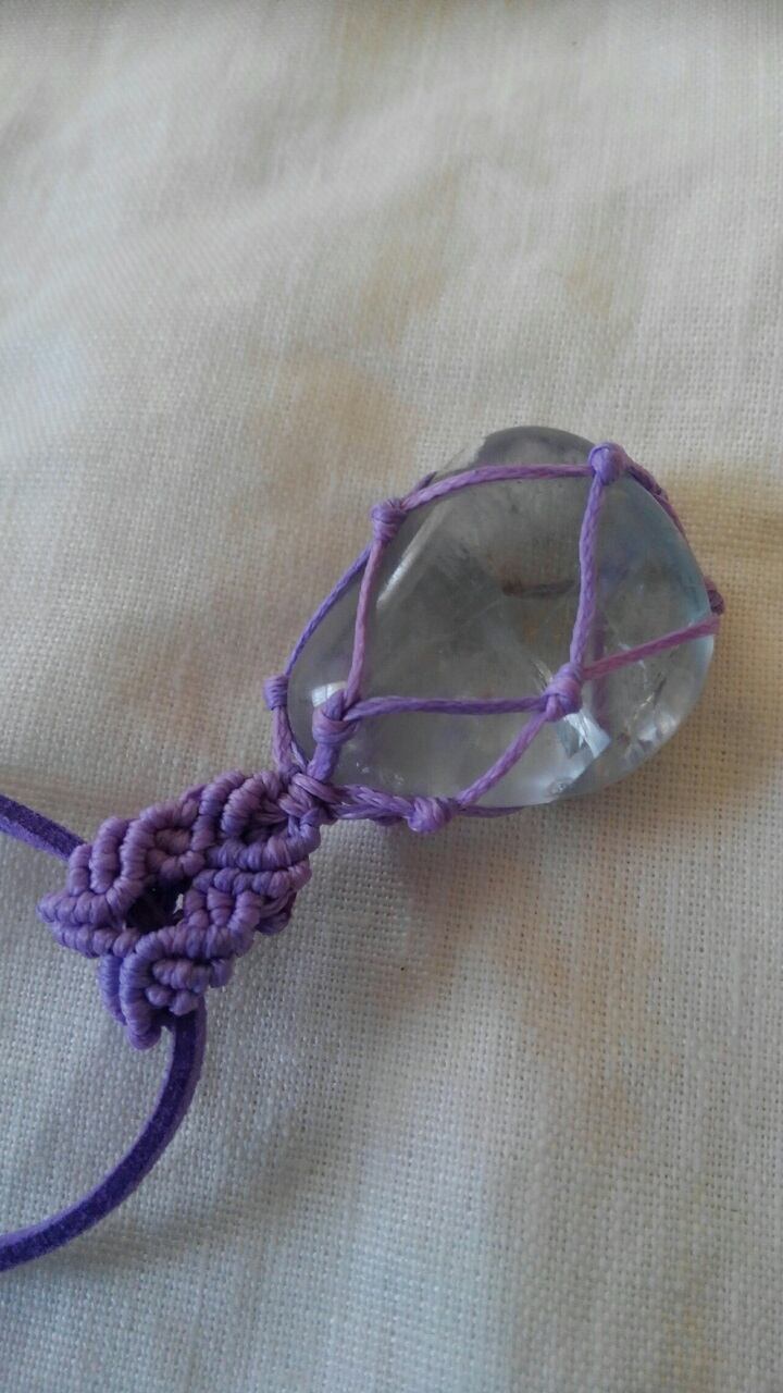 虹入り✡マダガスカル産セレスタイト磨き マクラメ編みペンダントトップ&スエード調紐 重さ約26g