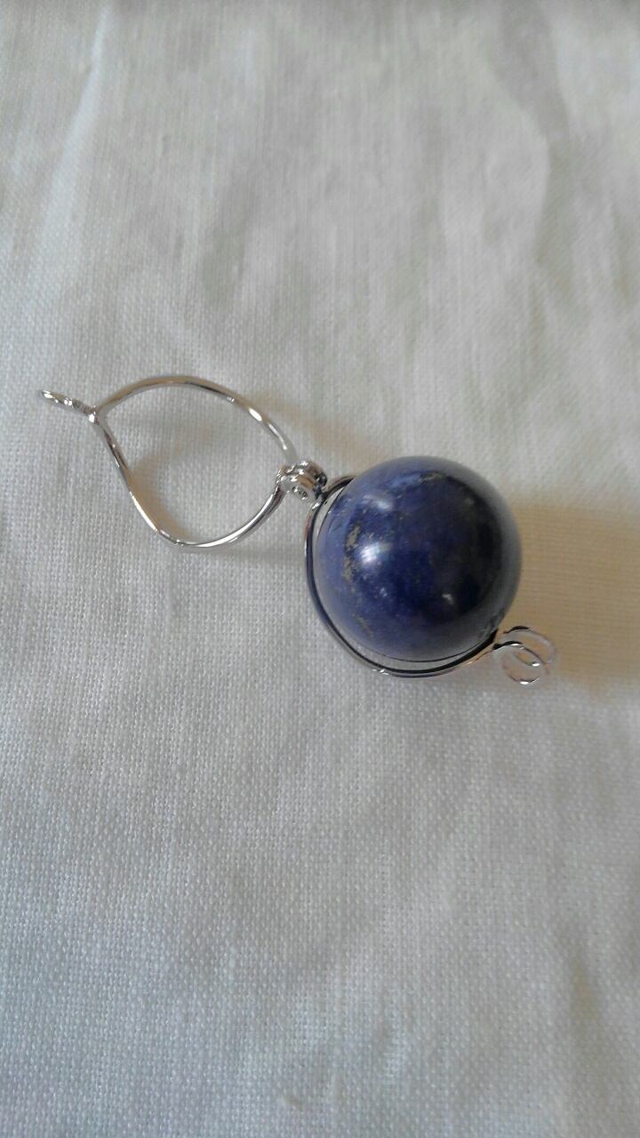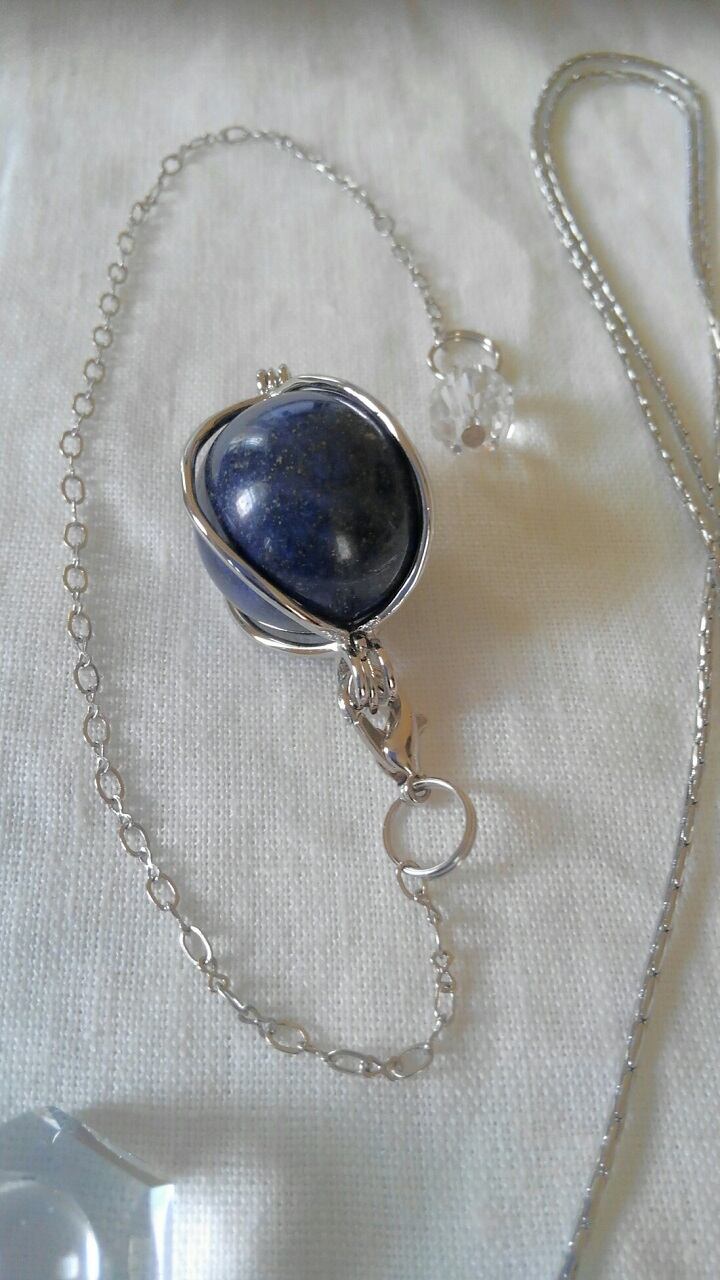【限定品】ラピスラズリ丸玉・三点セット ★ サージカルステンレス製ネックレスチェーン約70㎝付属・ペンデュラムチェーン付属・台座付属 石直径約20㎜