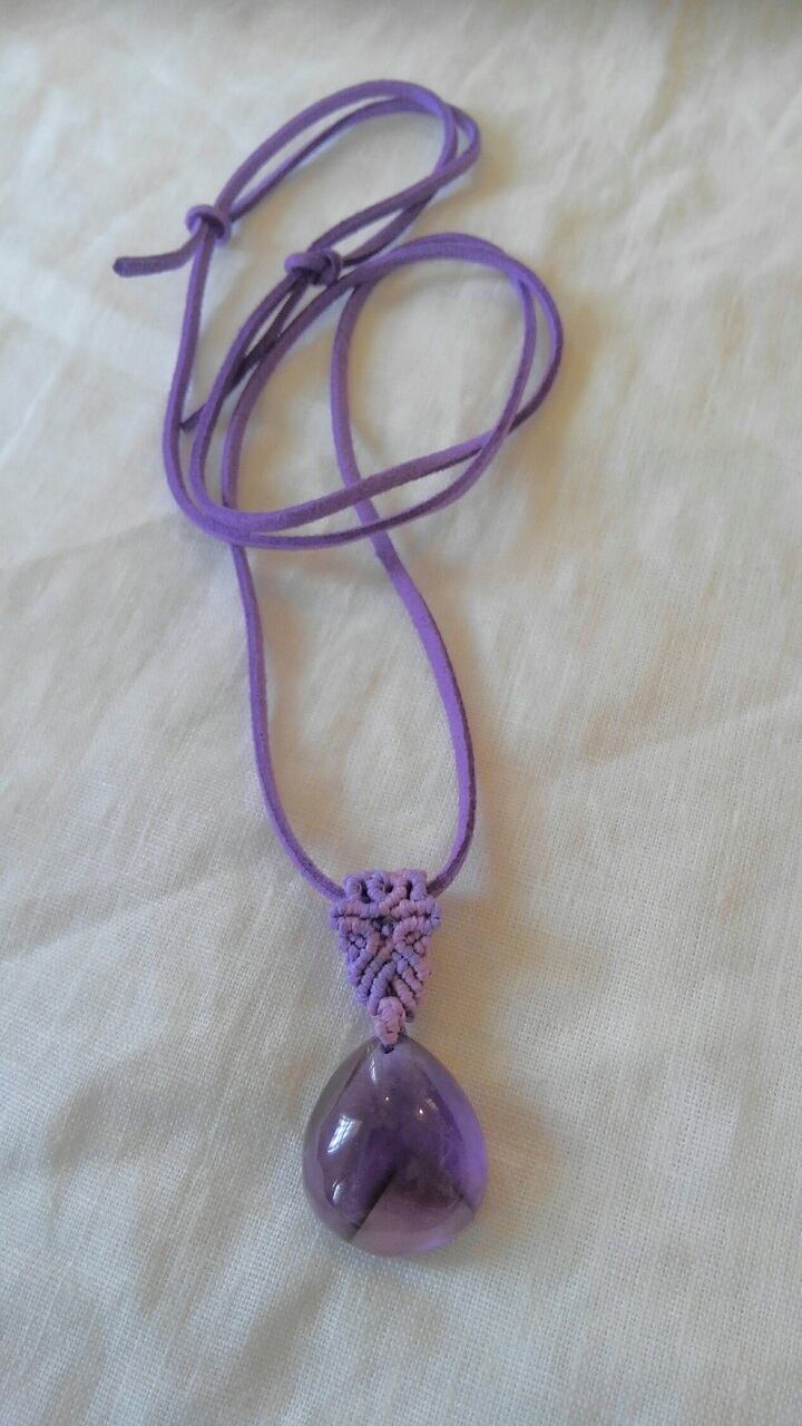ファントム(幻影山入り)アメシスト ★ マクラメ編みペンダントトップ&スエード調紐 重さ約10g