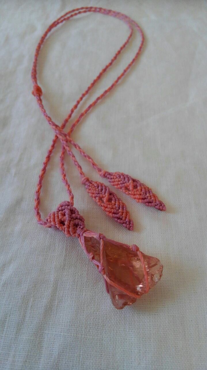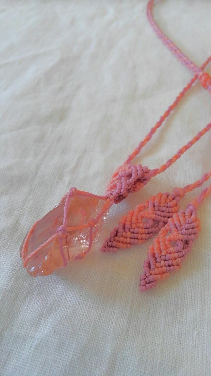 アンダラクリスタル ☆ ピーチ・ピンク マクラメ編みデザインネックレス 長さ約86㎝位まで調節可能