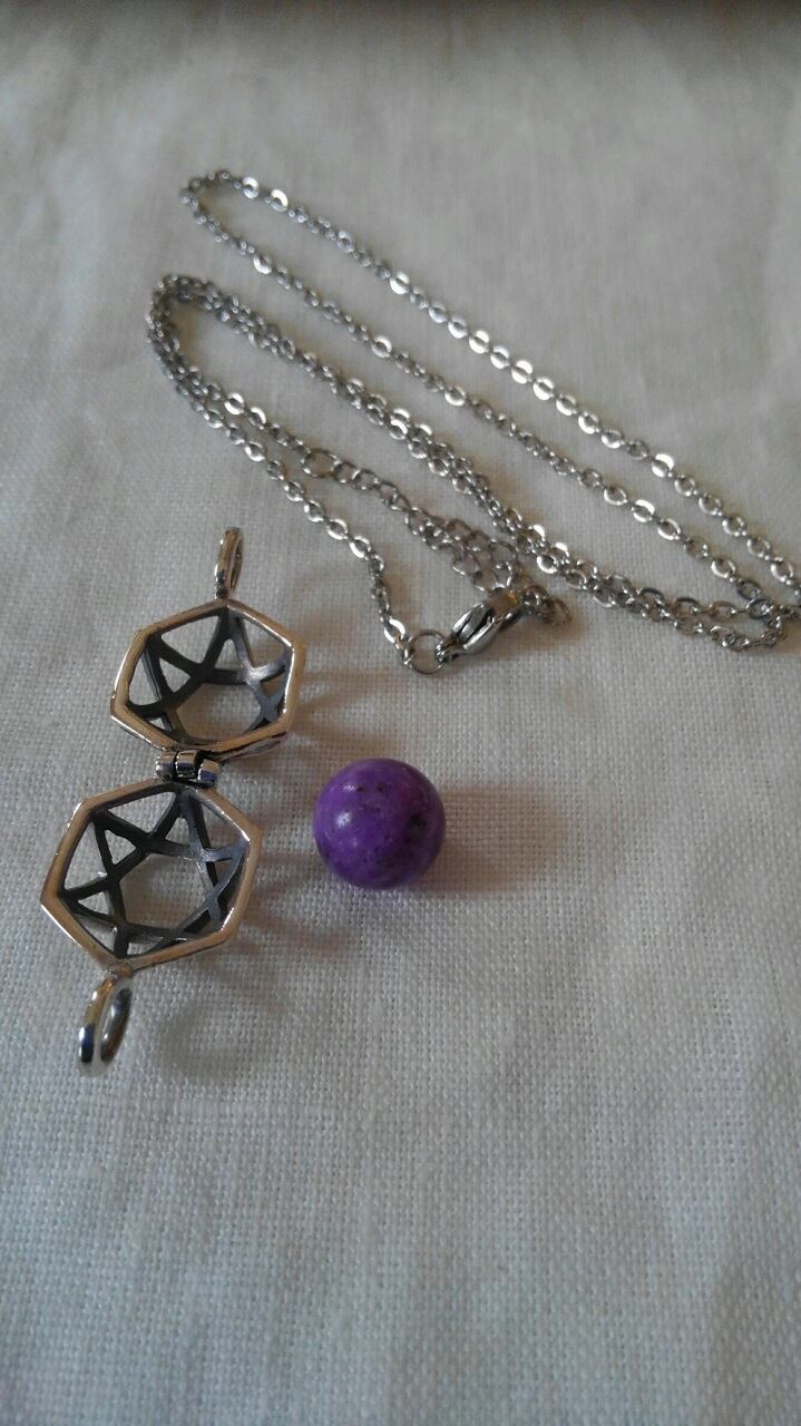 スギライト丸玉約10㎜(穴無し)&Silver925製六芒星デザインバスケット型ペンダント(入れ替え可能)&ステンレス製ネックレスチェーン約45㎝+約5㎝アジャスター付き 重さ約8g