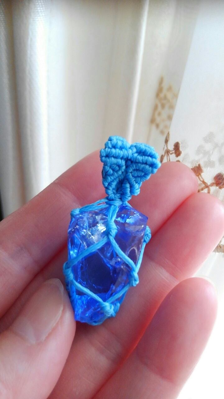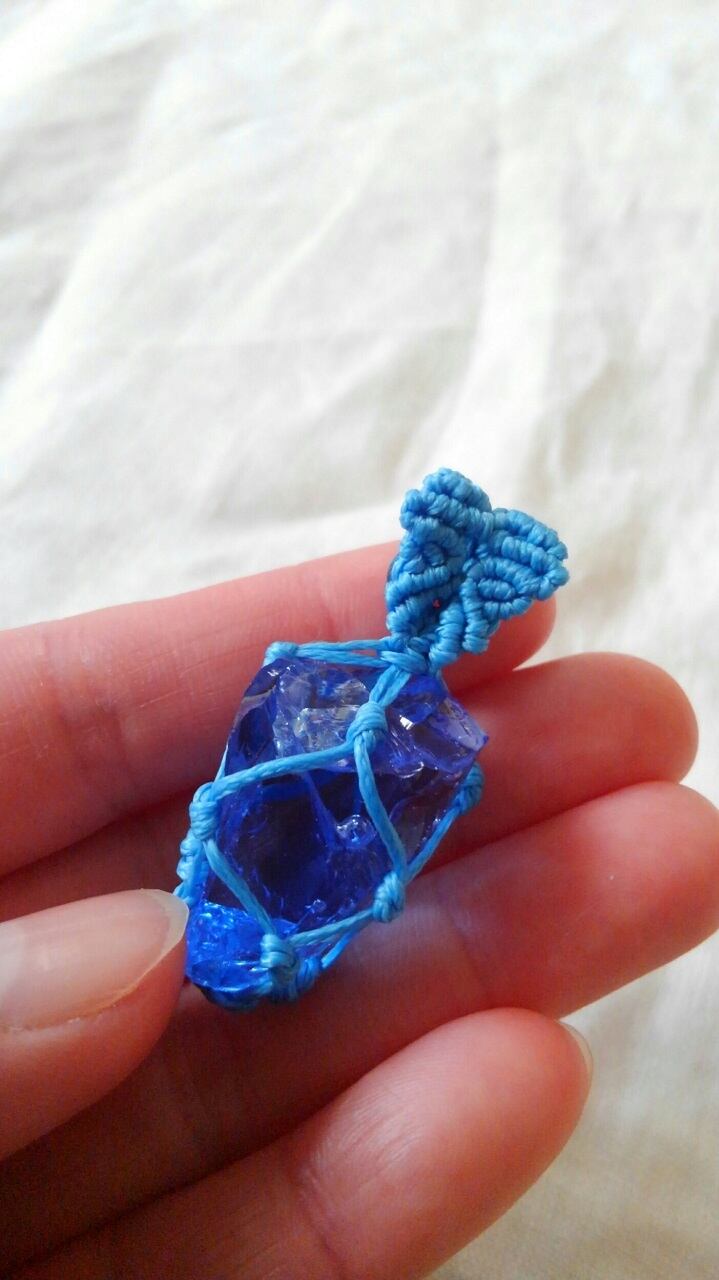 アンダラクリスタル (シエラネバダ産) ブルー(クリアカラー内包) マクラメ編みペンダントトップ 重さ約8g ポーチ付属