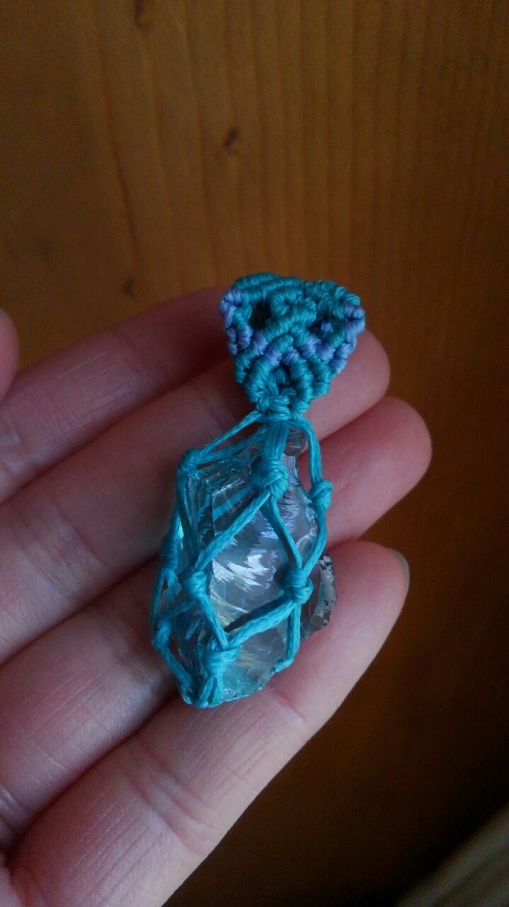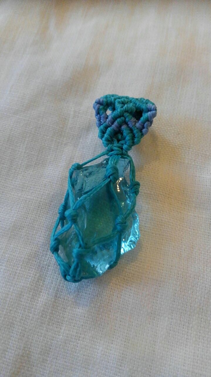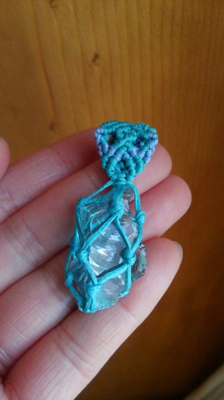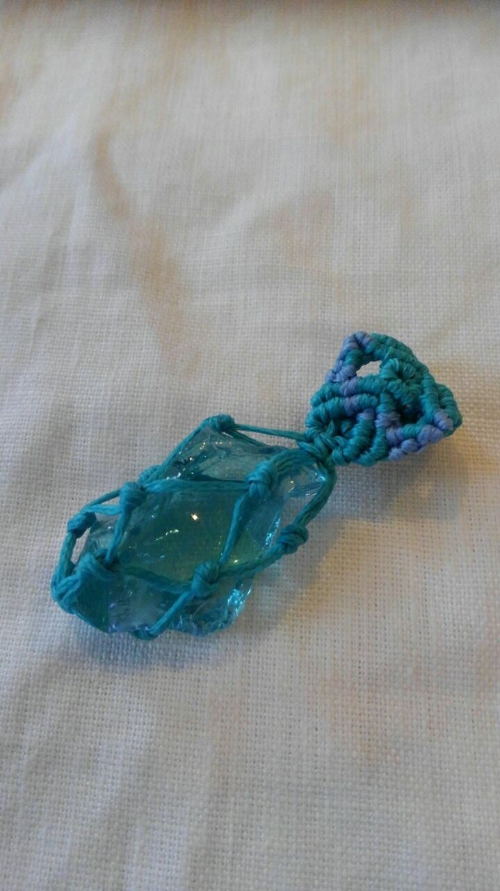 アンダラクリスタル (シェラネバダ産) ルミ・グリーン マクラメ編みペンダントトップ 重さ約7g ポーチ付属