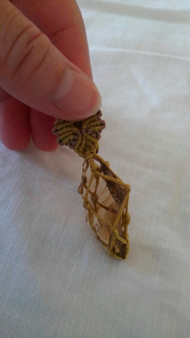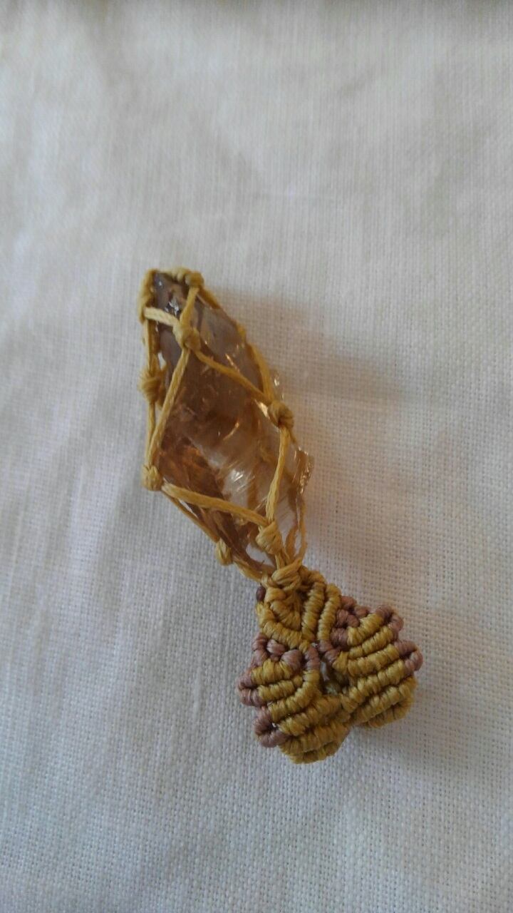 アンダラクリスタル (シェラネバダ産) シャンパンゴールド マクラメ編みペンダントトップ 重さ約6g